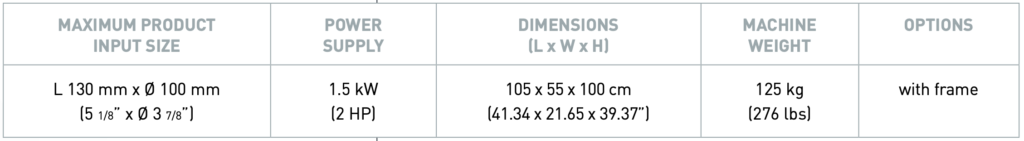 Kesme başlığı, 100 mm çapa kadar patatesleri kabul eder. Kompakt yapısı sayesinde hem mevcut hem de yeni hatlara kolaylıkla entegre edilebilir.