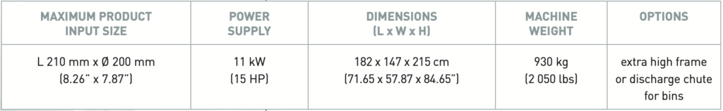 • Geniş ürün tamburu, büyük boyutlu kare, dikdörtgen veya silindirik peynir bloklarının doğrudan işlenmesine olanak tanır; bu sayede ön kesim çoğu zaman gerekmez.