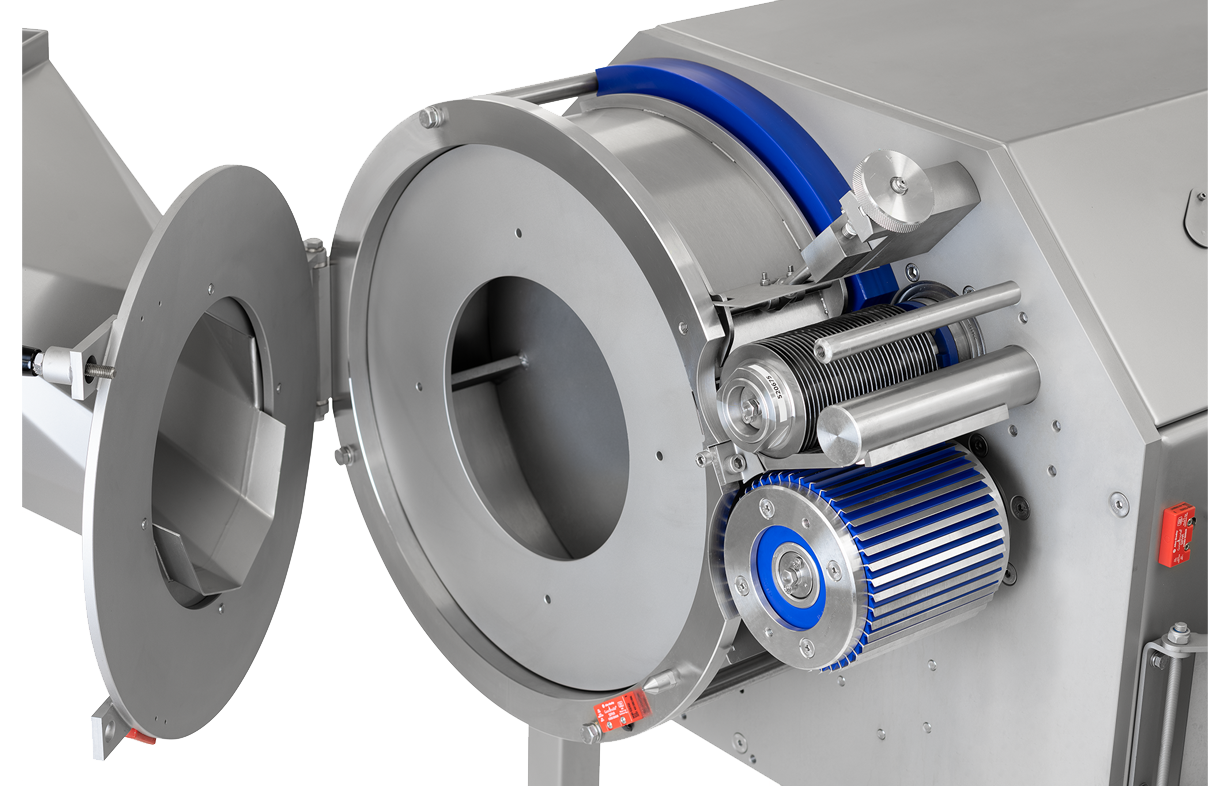 • Menteşeli besleme ve çıkış hunileri, makineye kolay erişim ve kapsamlı temizlik imkânı sunar.