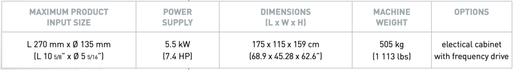 135 mm çapa ve 270 mm uzunluğa kadar ürünleri işleyebilir.