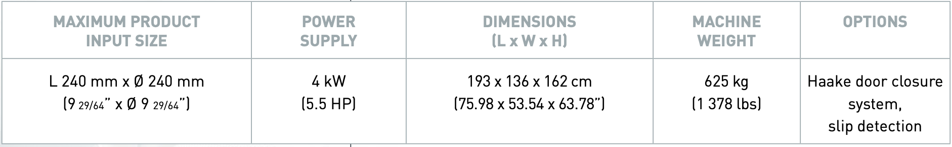 Bu yüksek kapasiteli küp doğrayıcı, 240 mm çapa kadar olan ürünleri işleyebilir. Ayrıca, beyaz ve kırmızı lahana gibi büyük çaplı ürünler için özel bir versiyonu da mevcuttur.