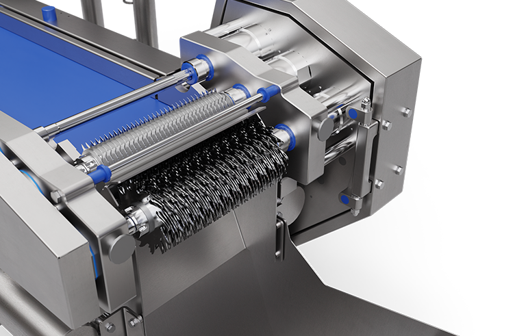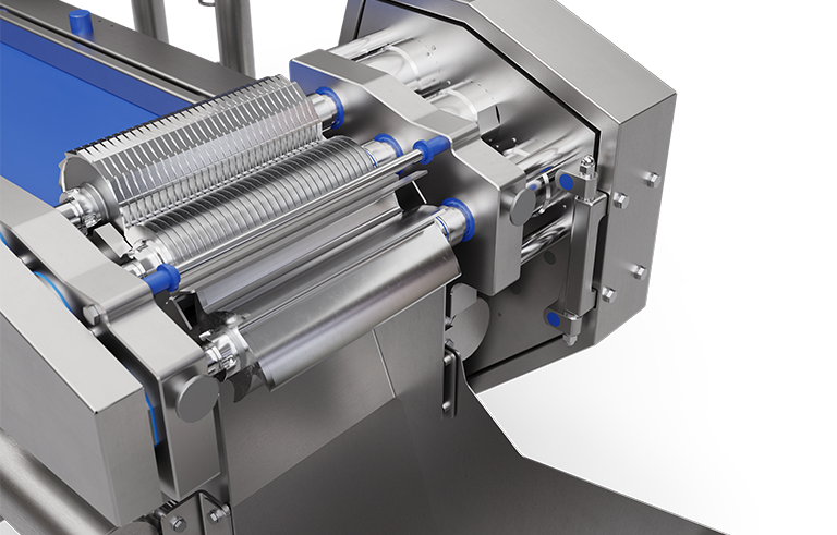 Ayrıca, bağımsız çalışan çift değişken hızlı motor sayesinde çoklu ürün kesiminde yüksek esneklik sunar. Ürünlerin doğal ya da önceden belirlenen kalınlıklarına göre küp, şerit, parçalanmış (shred) veya chunk formunda kesimler yapılabilir. Yeni tasarlanan çeşitli kesim takımlarının yenilikçi yapısı ile crosscut milinin bağımsız dönüşü birleştiğinde, kesim boyutunun ve şeklini daha hassas kontrol etme ve daha iyi bir ürün görünümü elde etme imkanı sağlar.