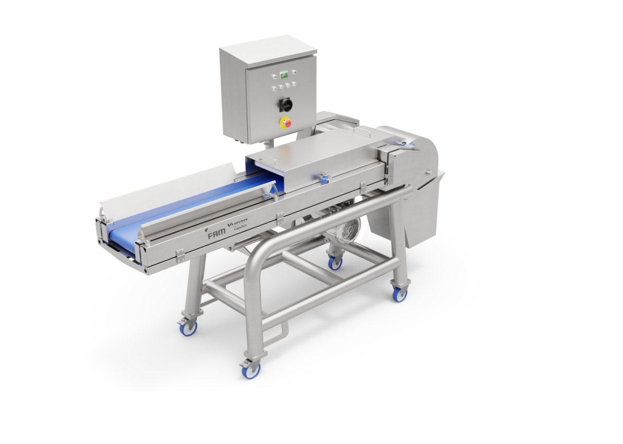 Yuran™ Capcitec, sebze ürünlerinin kesimi için geniş bir ürün girişine sahiptir ve biberler ile yapraklı yeşillikler için feed roll veya tahrikli üst bant ile donatılabilir.